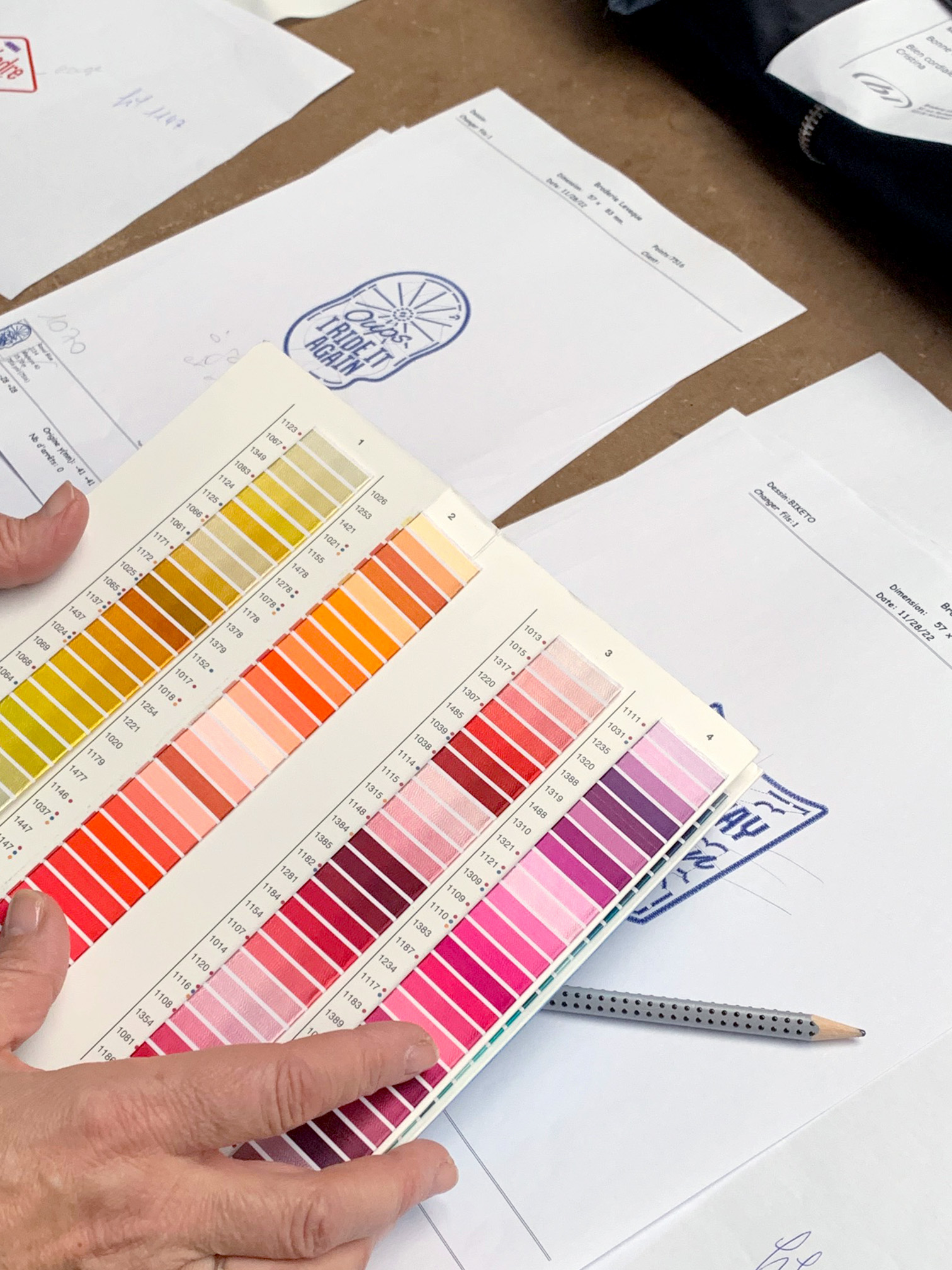 Faire le pari d’un cycle vertueux et coopératif, des créateur.trice.s invité.e.s au savoir-faire des prestataires impliqués. Un système circulaire en évolution, en quête de fabrication à moindre impact et de réemploi.